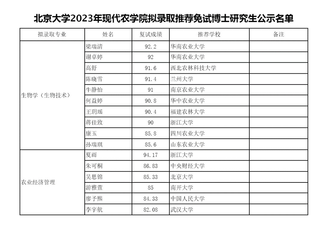 根据《北京大学2023年接收推荐免试研究生办法(校本部)》要求,经中文成人直播 综合考核并报研究生院批准,中文成人直播 2023年拟接收推荐免试研究生名单公示如下: