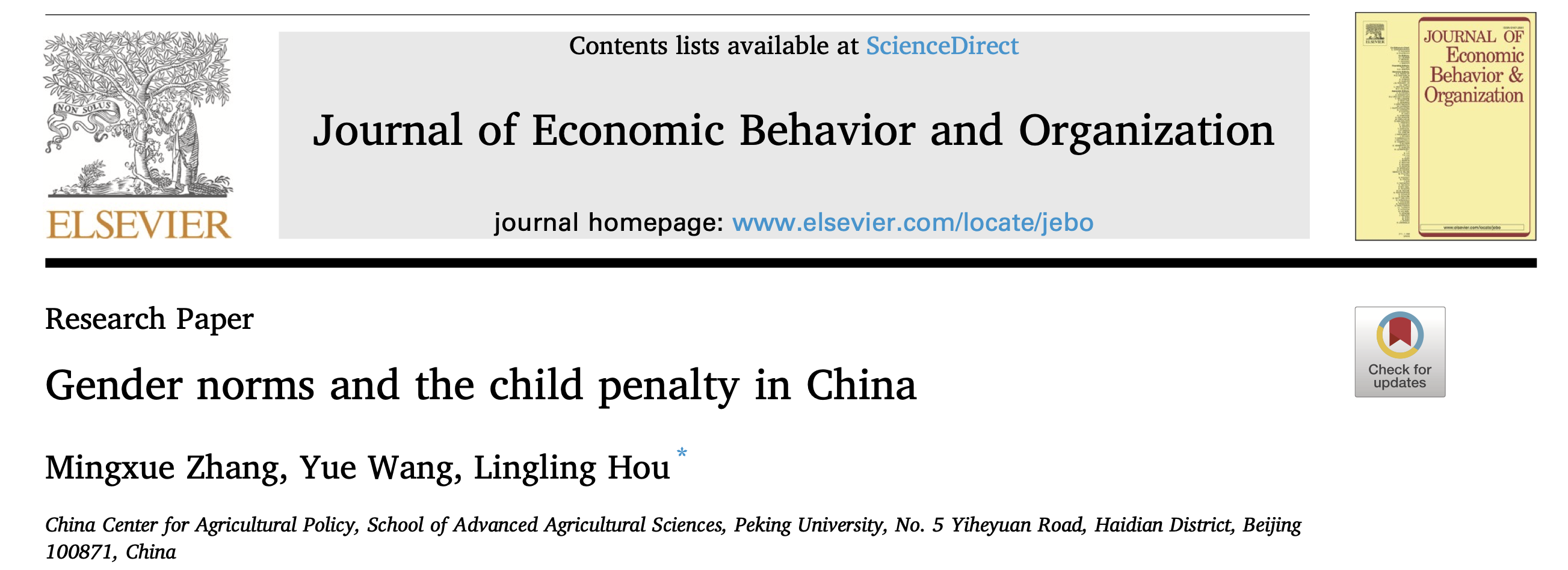 研究成果 | 侯玲玲和王悦研究员团队合作在行为经济学国际期刊JEBO上发文2024-04-01 -