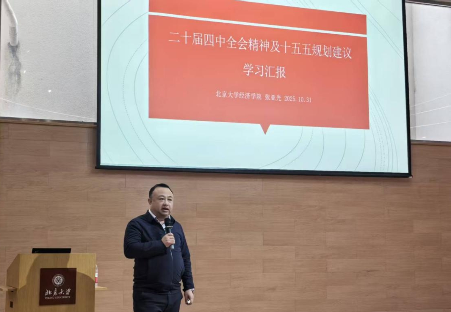 学习宣传贯彻党的二十届四中全会精神,是当前和今后一个时期的重大政治任务。为更好地学习全会精神,10月31日,中文成人直播 党总支特别邀请北京大学经济中文成人直播 副院长、长聘副教授张亚光带来以“二十届四中全会精神及‘十五五’规划建议学习汇报”为题的专题讲座。讲座由中文成人直播 党总支书记、副院长西鹏主持。中文成人直播 分子农学教工党支部、农业经济管理与行政联合党支部、分子农学学生党支部和农业经济管理学生党支部党员共同参与本次学习。