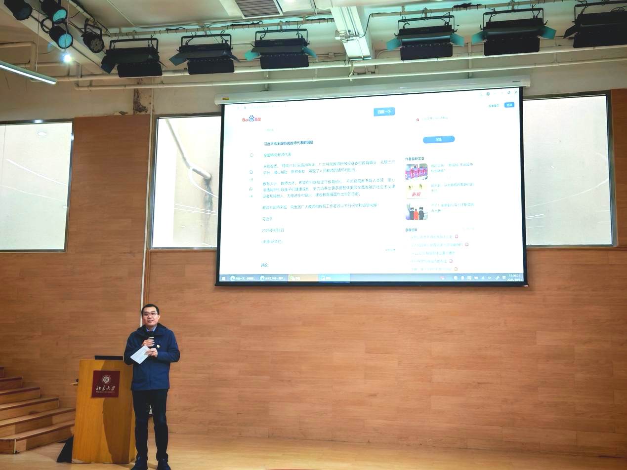 讲座后,西鹏带领师生党员共同学习了《习近平给全国特岗教师代表的回信》。西鹏首先回顾了“特岗计划”的实施背景与重要意义,该计划自2006年启动以来,有效缓解了乡村教师数量不足、结构不优等现实问题,为推动教育公平、服务乡村振兴作出了历史性贡献。“教育大计,教师为本”,习近平总书记的回信不仅是对特岗教师的关怀与激励,更是对全体教育工作者的殷切期望。西鹏鼓励全院党员教师,要将学习贯彻回信精神,与深入学习习近平总书记关于教育的重要论述紧密结合,始终胸怀“国之大者”,坚定政治立场,严守师德师风,落实立德树人根本任务,努力成为学生心中的“大先生”。